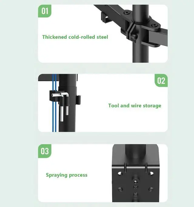 Compared with outstanding performance parameter: double screen desk mount delivers stronger adaptability compared to traditional monitor risers, ensuring users enjoy customised viewing angles across varied environments and work routines