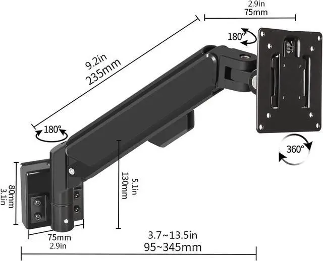 ? High- quality gas spring arm- with gas spring system, which can provide stable and durable height adjustment. Please adjust the tension of the monitor arm appropriately according to the weight of the monitor. It provides 11.5" height adjustment range and 9.8" extension