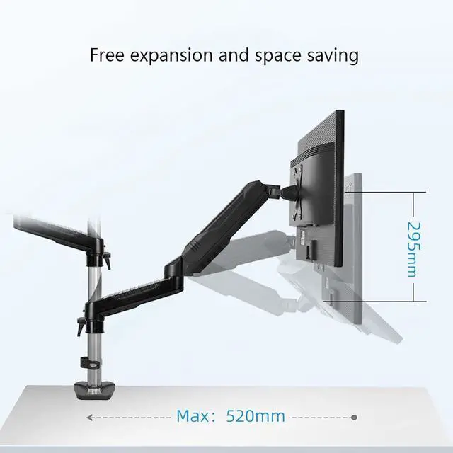 ? With the help of the bracket, the gas spring arm can adjust the height of the monitor up and down by 295mm, and stretch it back and forth by 520mm, freely choose the height of the monitor and a comfortable posture to achieve efficient work