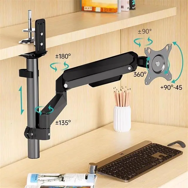 Full motion - Easy height adjustment, rotate 360°, tilt 135° up and down, swivel ±180° left and right.