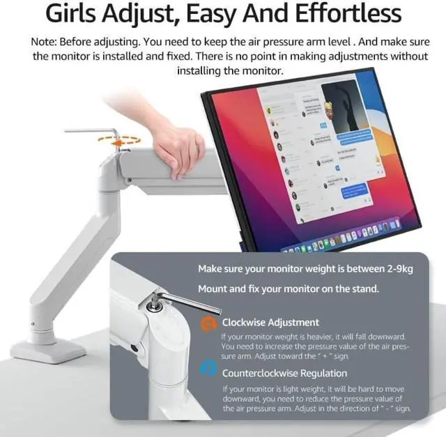 Sturdy & Reliable Design Built to support monitors weighing up to 198 lbs (9kg), this monitor arm stand ensures stability for your screen. Its heavy-duty construction guarantees long-lasting durability for your home office or workspace