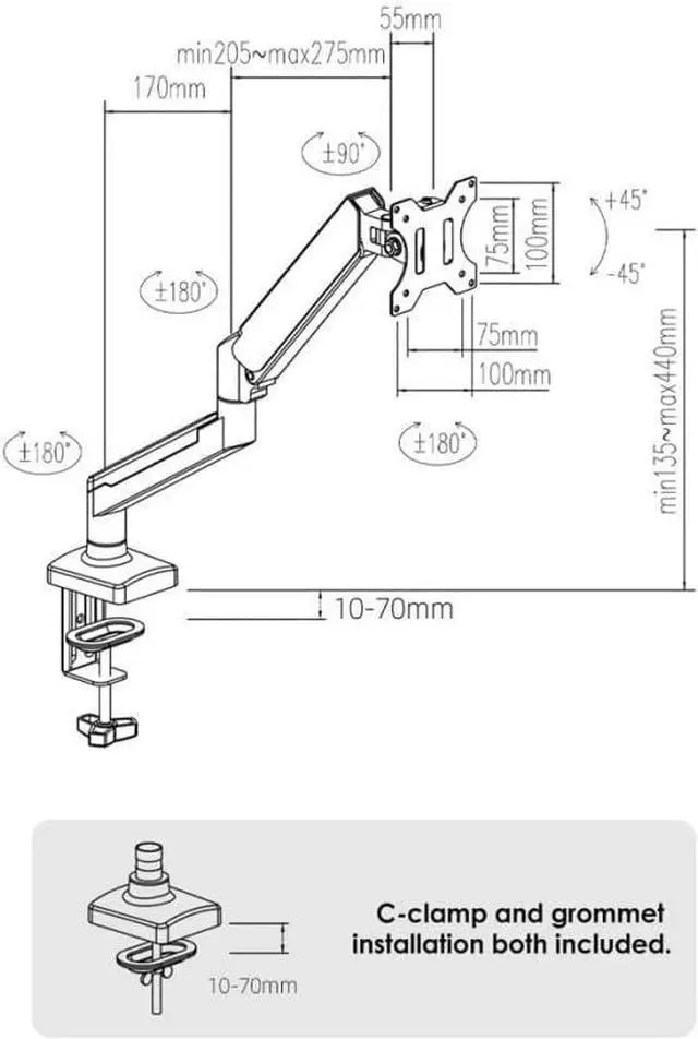 Enhanced Flexibility & Adjustability The Monitor Arm Desk Mount offers 360 rotation, height adjustability, and tilt/swivel functionality, providing optimal viewing angles for your 13"-32" monitor. Perfect for ergonomic workspace setups and standing desk compatibility