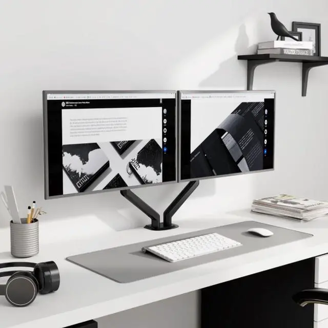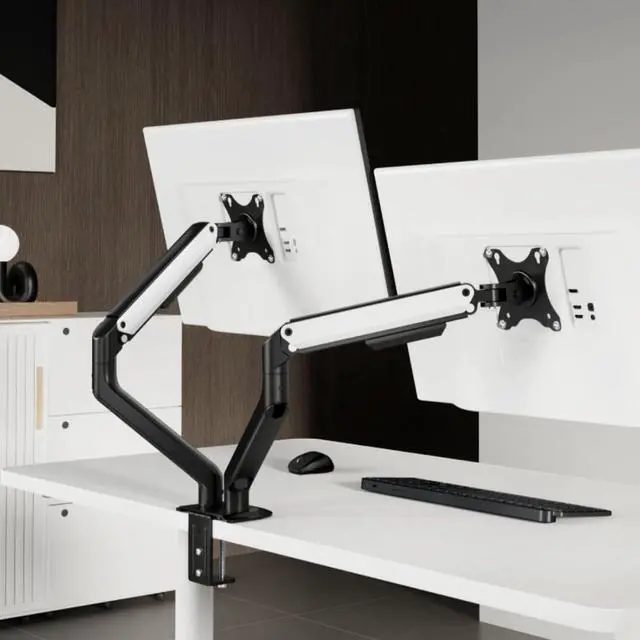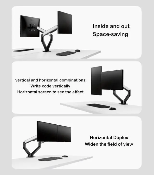 Dual-sn floating lift bracket: Heavy duty monitor arm with built-in cable management helps hide wires. The large sn is suspended, which frees up a whole desk space and creates a better working environment.