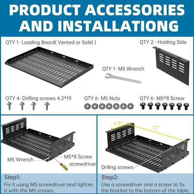 Install Without ToolsWe are Included All the Hardware You Need for Sturdy Mounting on 1.5"-Thick Surfaces. No Drilling Experience Necessary for our under desk shelf