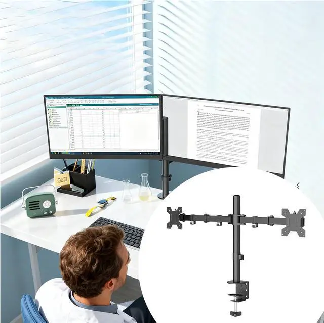 Independent Screen Control: The dual-monitor stand provides precise mechanical arm adjustments for each screen, enabling customized positioning to reduce neck fatigue and optimize multitasking performance, suitable for demanding work setups requiring flexibility and focus