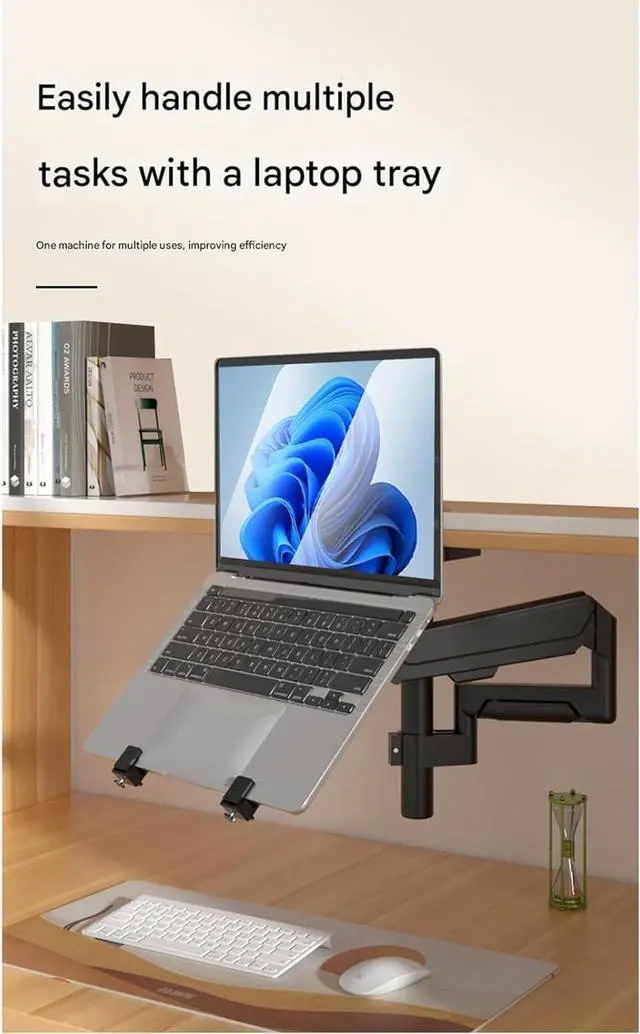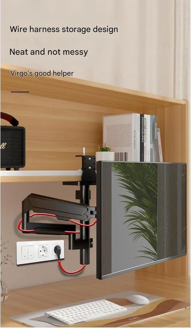 Free up your desktop space: Heavy-duty monitor arm with built-in cable control professionally helping to hide wires. The large screen is suspended, which can free up a complete desktop space and create a better working environment.