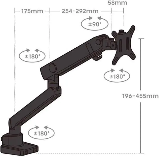 Flexible Adjustment: Full motion single monitor desk mount allows you to adjust your monitor to the perfect height and distance, 180° swivel, tilt +55° to -55°, 360°rotation, reducing neck and back strain and increasing your productivity