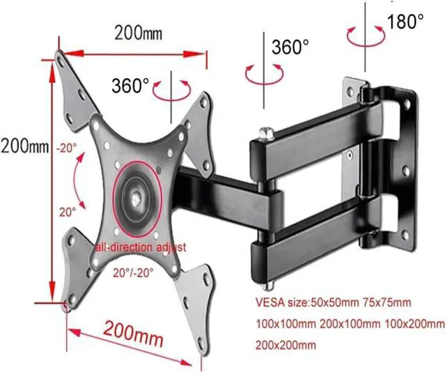 LCD-123A Full Motion 10"-37" extendable arm Panel Display TV Wall Mount Max.VESA 200*200mm Loading 20kgs Monitor Holder Support