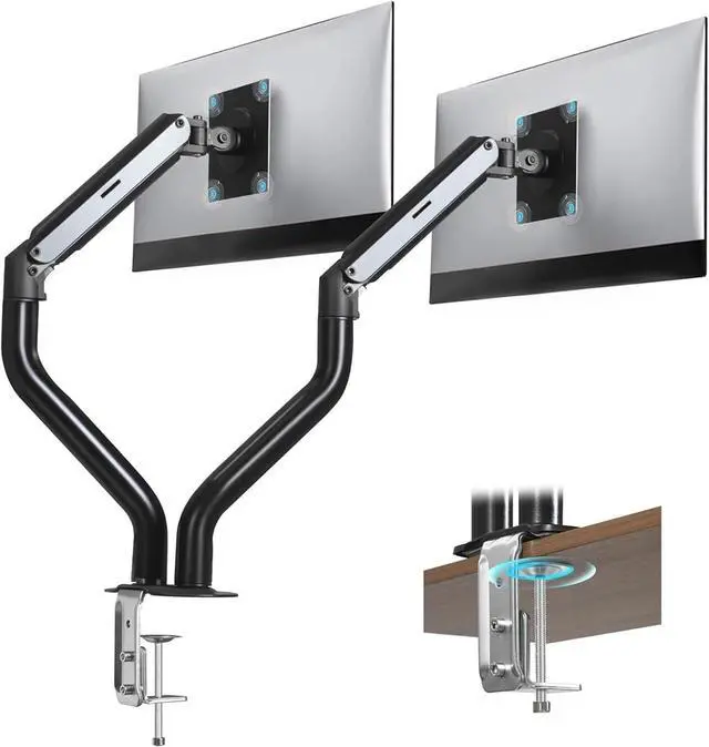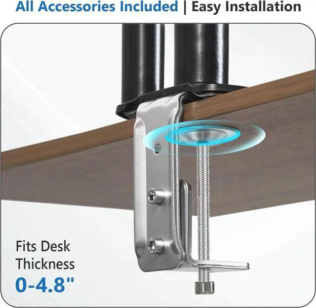 Sturdy & Durable - A Long-Lasting Dual Computer Monitor Stand. Crafted from heavy-duty alloy steel, this dual monitor stands option is built to last. The reinforced C-clamp on this dual monitor desk mount secures to desks up to 4.8 inches thick, making it a stable monitor mount desk solution. Its not just a duel monitor stand for deskits a computer monitor mount for desk tested to handle 250,000 gas spring cycles, ensuring smooth adjustments for years.