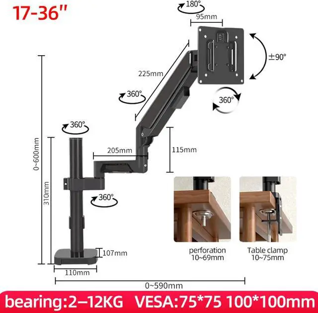 Great Adaptability: This gas spring single monitor mount is designed fits 17-32 inch screens, holds 2-9kg. The single monitor arm desk mount is suitable for pattern 75x75 or 100x100mm