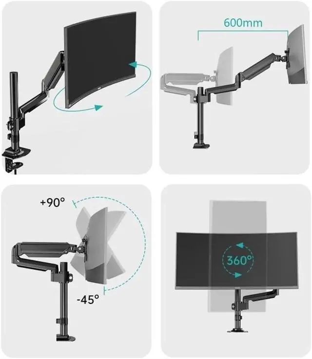 Our adjustable single monitor arm offers a wide range of movement, Monitor-Mount supports screen ratates 360° for landscape or portrait orientation, swivels 180° to share your displays. It can offer the perfect position for your gaming monitor or PC screen, Adjustable single-monitor-mount include ergonomic design can effectively alleviating posture and back issues.
