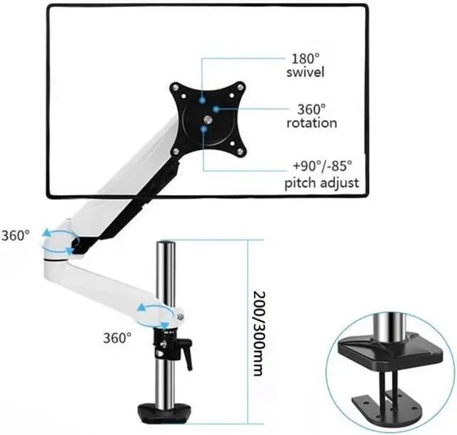 Fully Adjustable: The single monitor mount offers +90° to -85° tilt, 180° swivel, 360° rotation. Our vesa monitor mount is easy to adjust, just push the monitor arm up or down with only one hand to accurately stop at the most comfortable height for you!