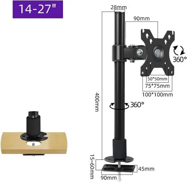 Wide Compatibility: Single monitor arm supports most 14-27 inch screens with patterns 75x75mm, 100x100mm, holds up to 15.4 lbs. Please confirm the patterns, weight and size of your display before purchasing.