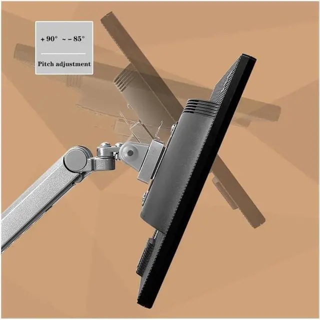 Single monitor stand easily adjust due to the mechanical spring system, raise, lower, pull, and push your monitor, including a max arm height of 19.29", up to 20.47" of arm extension, +90°/-85° monitor tilt, 180° swivel, and 360° rotation to find the perfect working position and most comfortable viewing angle.