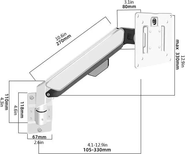 Ergonomic viewing height, gas spring monitor arm facilitates 11.4 inches of height adjustment. Adjust the monitor to suit your posture by arm extension, vertical tilt, horizontal rotation, and horizontal or vertical rotation