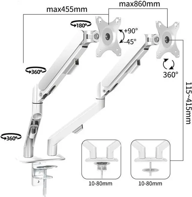 Easy to Assemble: We provide all the necessary tools and hardware for easy assembly. The detachable mount with dual mount options. Desk required thicknesses for both C-clamp mount and grommet mount is 0.39" to 3.14".