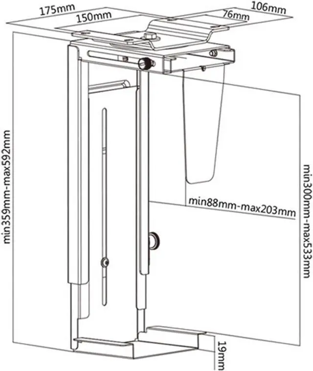 This CPU holder conveniently mounts your PC case under a desk or flat work surface for off the floor, easy access. Perfect for protecting your equipment and saving floor space.