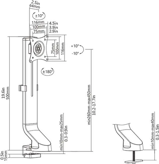 Our display stand supports 7.4-inch height adjustment, up and down ±10° tilt, left and right ±10° rotation, ±180° screen rotation, free switching between horizontal and vertical screens, raising the monitor to eye level, improving posture, and reducing neck and neck Shoulder pressure while increasing productivity