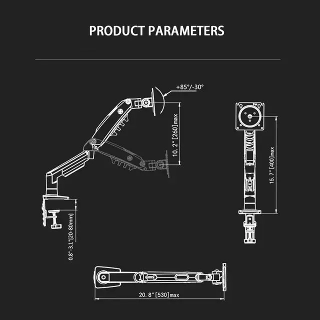 PREMIUM CONSTRUCTION: Aerospace-grade aluminium alloy and cold-rolled steel frame provides stable support with 9kg load capacity and 560mm arm extension