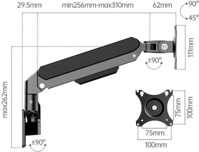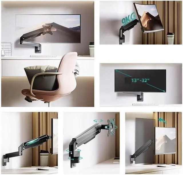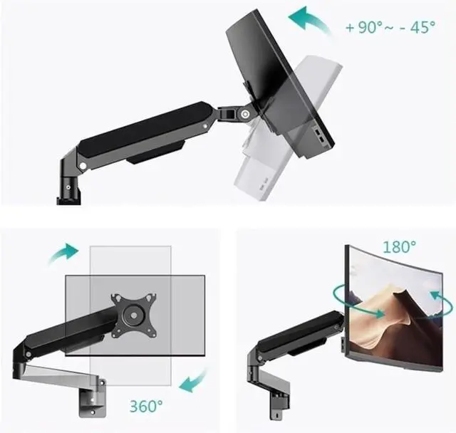 Sturdy Construction & Longer Life Premium gas spring makes movement easier and smoother. Heavy duty monitor wall mount built with quality aluminum securely holds the monitor stable.