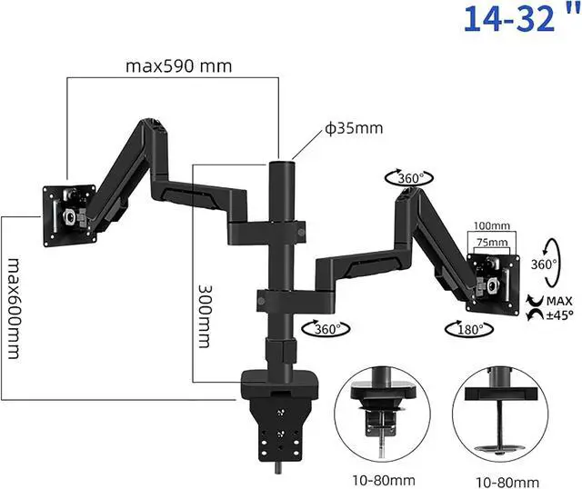 Fully Adjustable - The adjustable gas spring system ensures your monitor can be easily positioned anywhere you want, with unhindered adjustment, allowing you to lift up and down, stretch forward and backward, and rotate the screen to find the best ergonomic position.