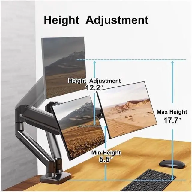 This stand features a dual-arm structure that allows you to adjust each monitor independently. The dual-arm design allows you to position your monitors precisely as needed, such as tilting them for an optimal viewing angle or stacking them for a more immersive experience.