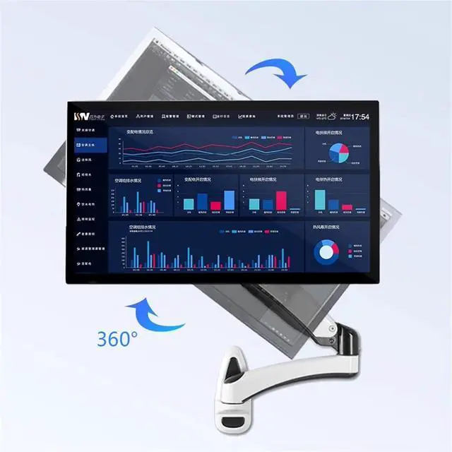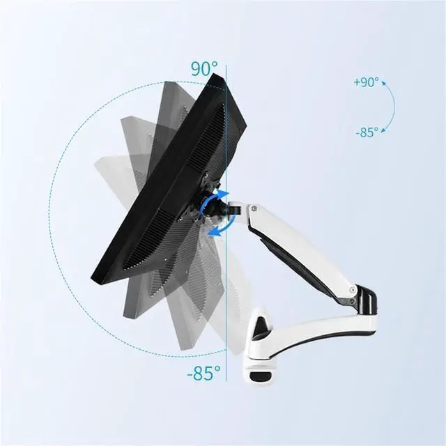 This wall mount monitor arm features +90°/-85° tilt, 180° swivel and 360° rotation from landscape to portrait mode. The arm can also be extended forward up to 23.2 inches, providing you a more flexible, comfortable viewing angle and helping relieve strain on your spine, neck, and shoulders.