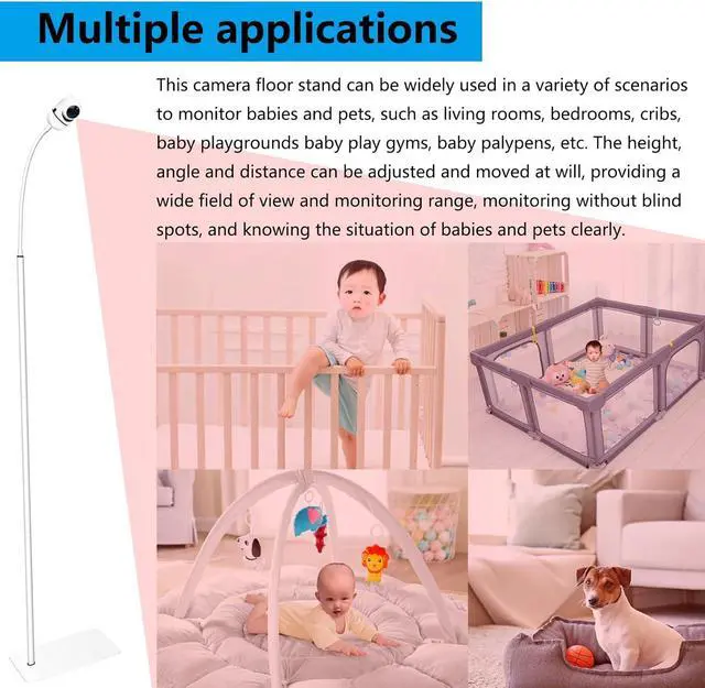 WIDE ADAPTABILITY: This floor stand baby monitor mount is compatible with HelloBaby baby monitor HB65 HB66 HB6550 HB6558 HB248; Compatible with all baby monitors with 1/4 screw hole; BABY MONITOR CAMERA NOT INCLUDED!