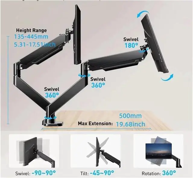 BEISHI 14-34in Dual Monitor Bracket Ergonomic Adjustable Dual Screen Bracket Protect Cervical Computer Heighten Shelf Load2-10kg