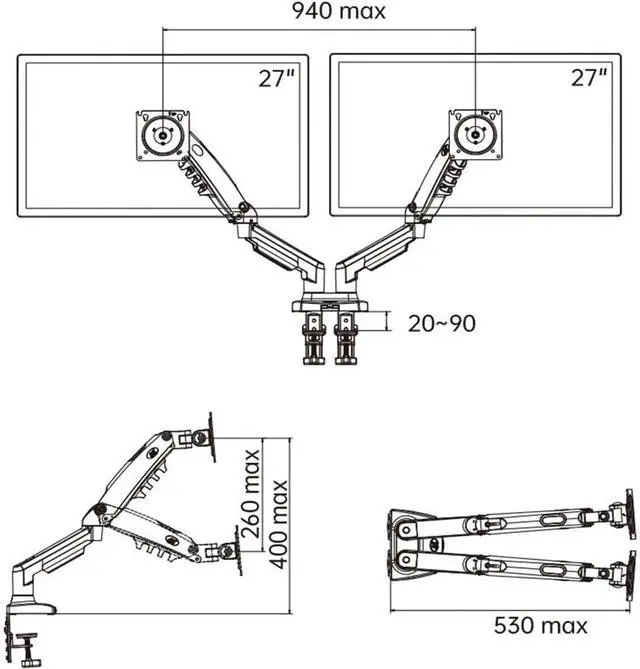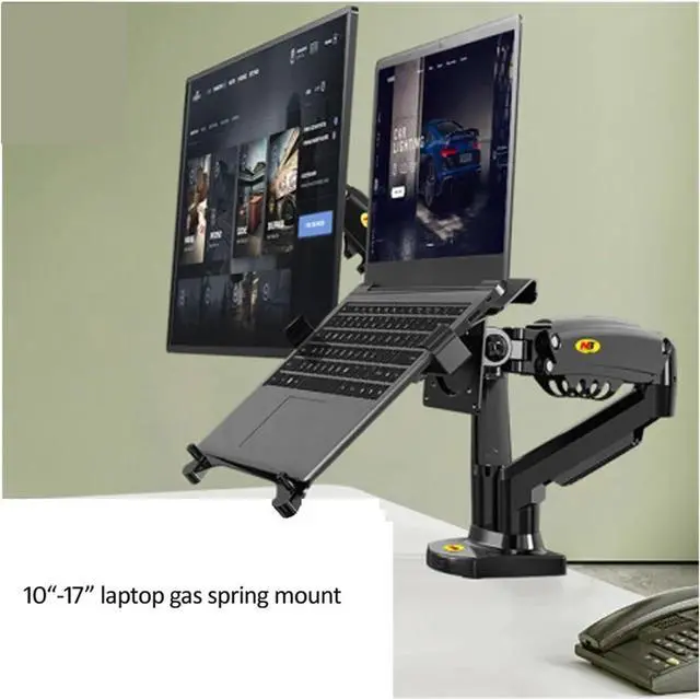 Desktop NB F160 + FP-2 Gas Spring Dual Arm For 17"-27" Monitor Holder + 10"-17" Laptop Support Air Press Mount Stand Load 2-9kg