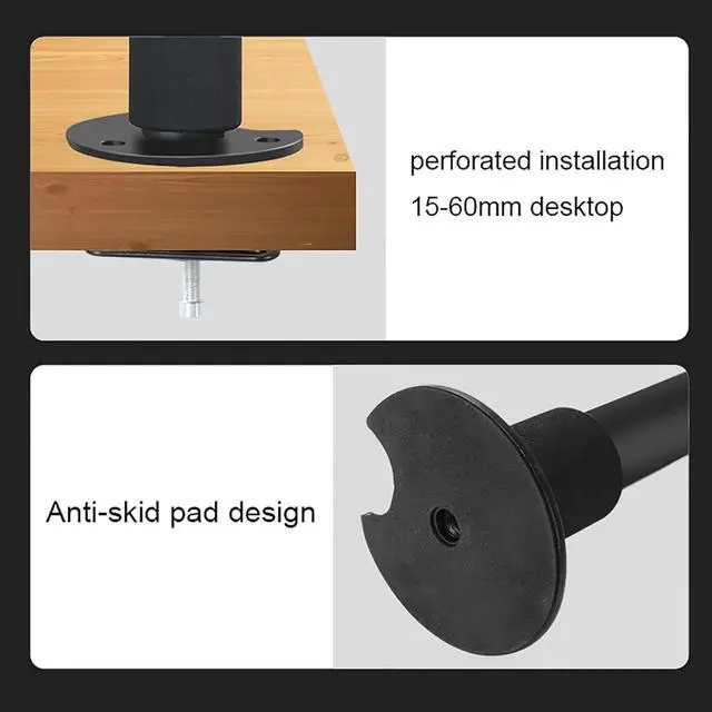 Desktop mount options: The unit can be mounted using perforated installation. while perforated installation fits desks 1.5-6cm/0.59-2.36inch thick, easy to assemble.