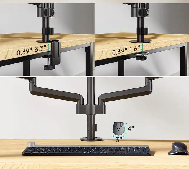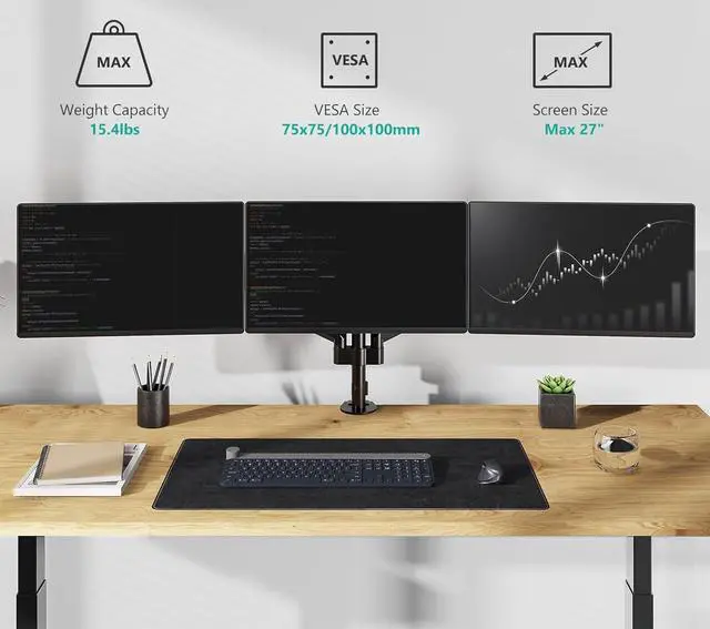 UNIVERSAL COMPATIBILITY - Suitable for screens up to 27" with VESA mount 75x75mm or 100x100mm, max load 7kg/arm.
