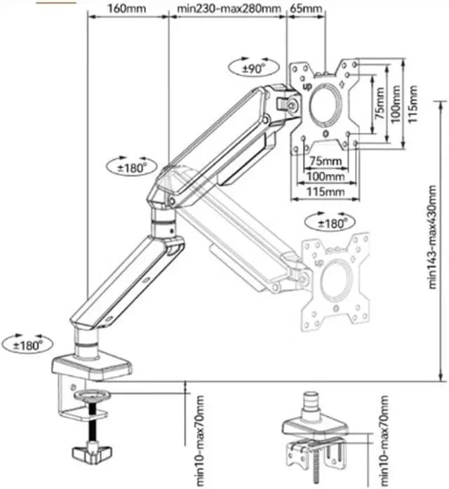 Adjustment: Experience ultimate comfort and flexibility with this adjustable monitor mount. Featuring 90° to -45° tilt, 180° swivel, and 360° rotation for landscape or portrait mode, you can easily find the perfect ergonomic position to help reduce discomfort and fatigue.