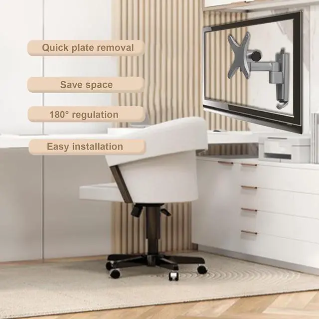 TIDY AND UNCLUTTERED: The wall display arm built in cable management well solve the problem of cluttered and tangled cables, freeing up your desktop
