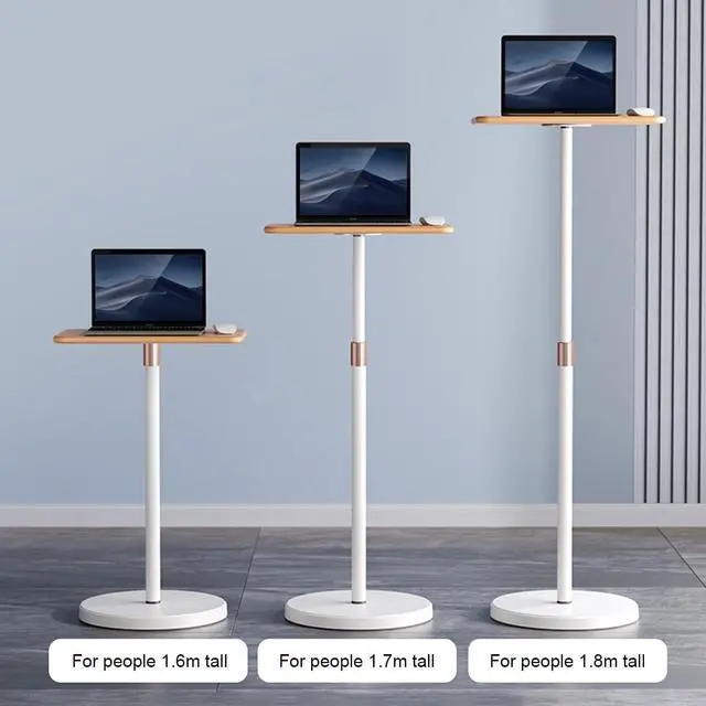 Adjustable Floor Standing Laptop Stand with Round Stable Base, Ergonomic Design for Home Office and Workspace (Original Wood)
