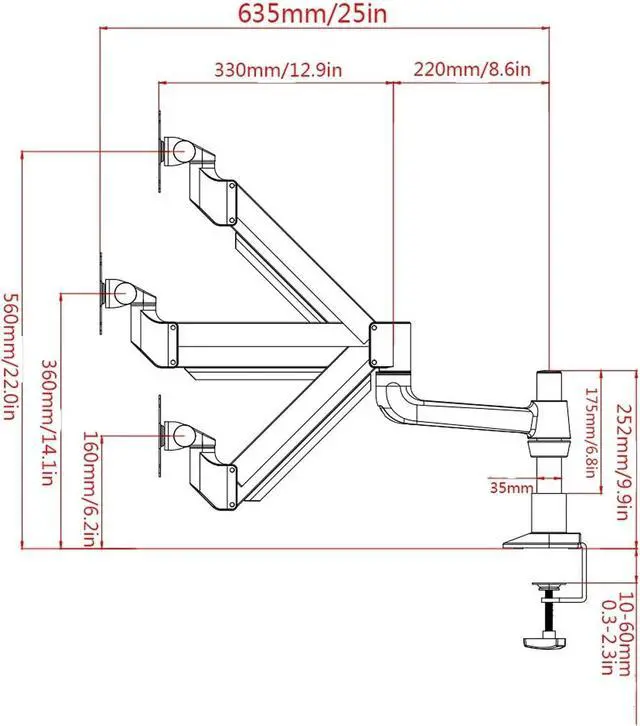 Flexible Installation: Supports C-clamp or grommet mounting on desks up to 2.3 inches thick (clamp) or 2.7 inches thick (grommet).