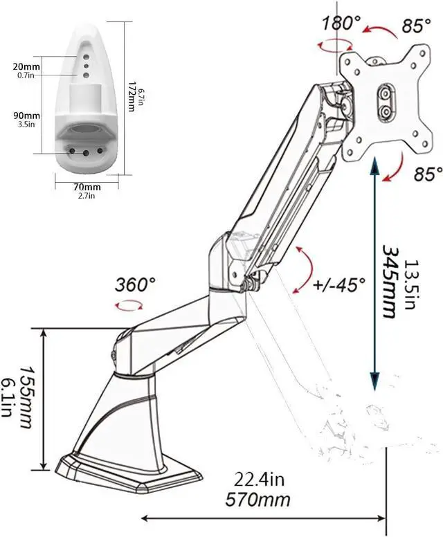 Ergonomic Viewing: Fully adjustable monitor arm offers tilt, swivel, and rotation for ideal viewing angles, including portrait mode.
