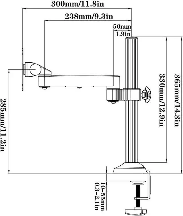 Dual Installation Options: Choose between C-clamp (for desks 0.3-2.1 inches thick) or grommet installation (for desks 0.3-2.3 inches thick).