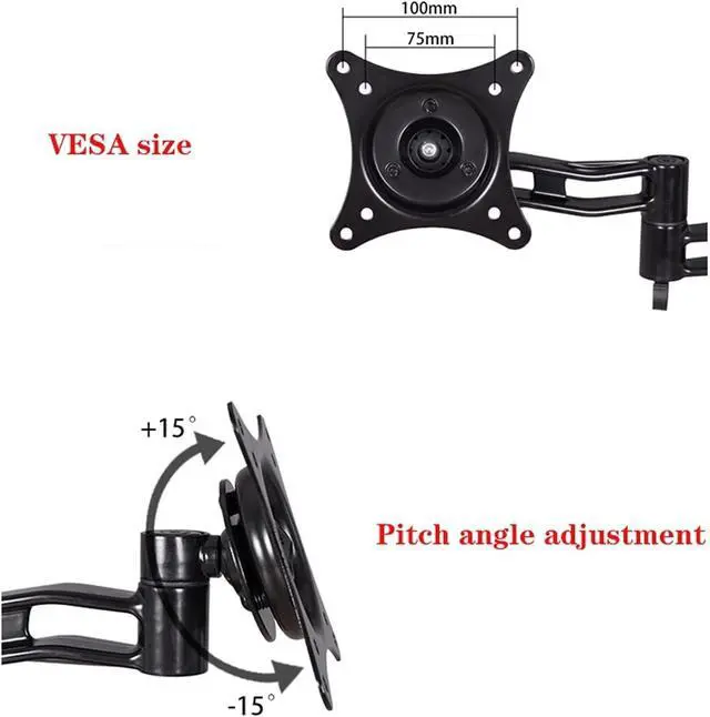 Wide Compatibility: Supports most flat-screen monitors from 15" to 27" with VESA 75x75mm and 100x100mm mounting patterns, with load capacities from 13.2 to 17.6 lbs.