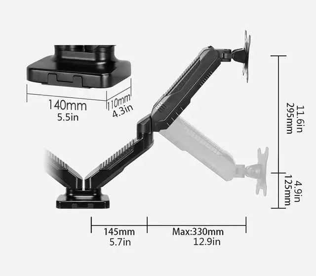 Flexible Movement: Offers +90° to -80° tilt, ±90° screen rotation, 220° base rotation, and 360° upper arm swivel.