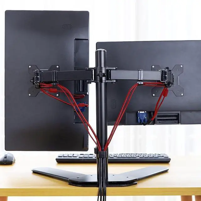 Wide Compatibility: Supports two monitors from 10" to 27" with VESA 75x75mm and 100x100mm mounting patterns.
