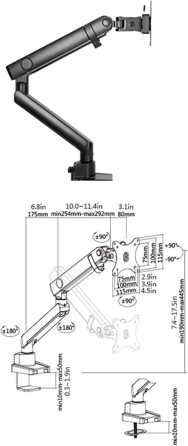 Dual Mounting Options: Choose between C-clamp or grommet mounting, fitting desks with thicknesses ranging from 0.3 to 1.9 inches for flexible placement.