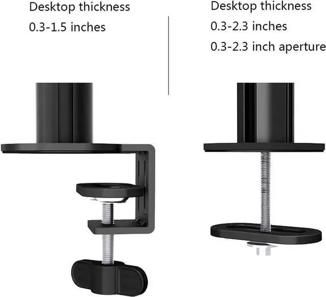 Dual Installation Methods Choose between desk clamp (0.3"1.5") or grommet mount (0.3"2.3") for secure and versatile setup.
