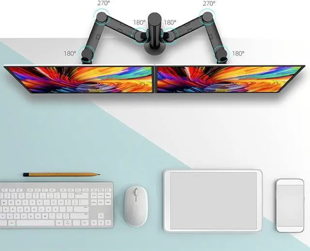 Space-Saving Design Made of strong aluminum alloy and ABS, this dual monitor stand maximizes desktop space and organization.