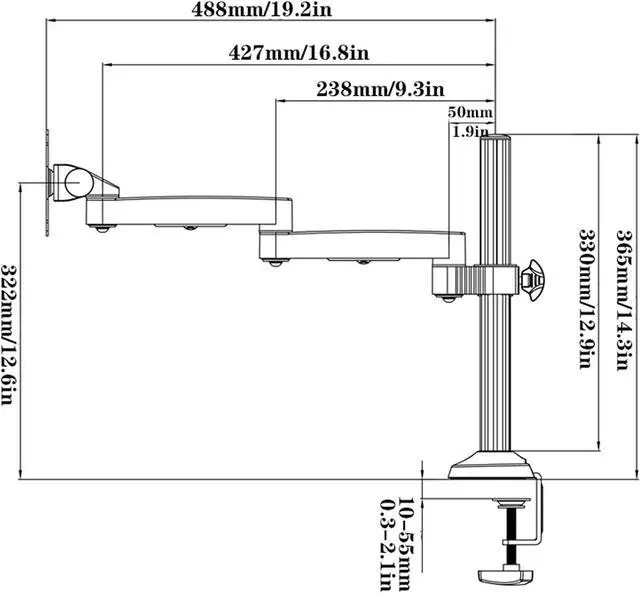 Dual Mounting Options: Securely attaches with either a C-clamp (0.3-2.1 inches desk thickness) or grommet base (0.3-2.3 inches desk thickness).