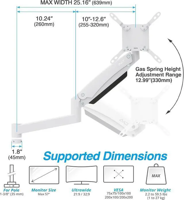 Supports Ultra-Wide Monitors: Securely holds 17" to 57" flat, curved, or super ultrawide (32:9) screens up to 59.5lbs (27kg), perfect for professional and gaming setups.