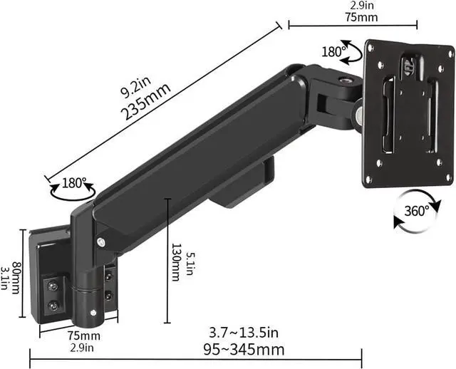 Space-Saving Design: The wall-mounted design frees up desk space while providing easy and adjustable screen positioning for a comfortable viewing experience.