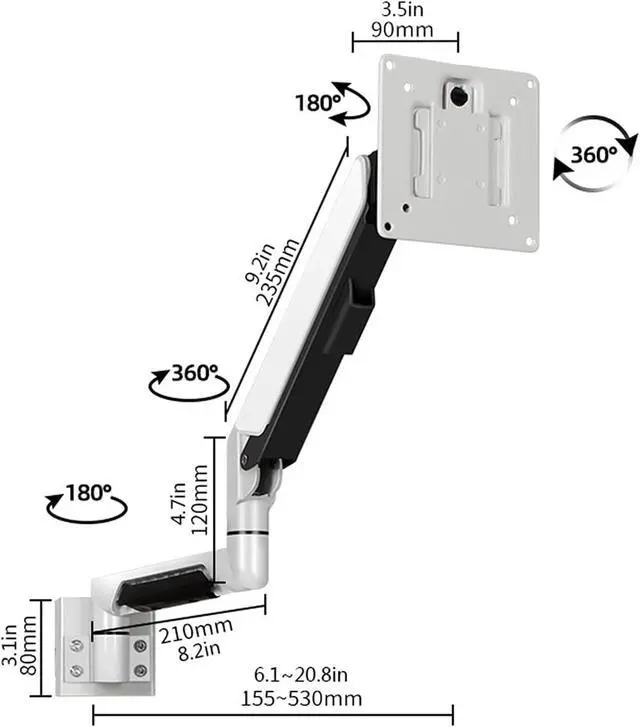 Fully Adjustable Motion: Enjoy a range of motion with tilt, swivel, and rotation features, allowing you to position your monitor at the perfect angle for comfort and productivity.