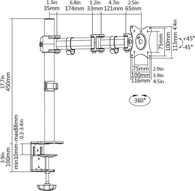 5.09MM thickened large base,clamping the desktop,stable and reliable; 35.08MM thickened vertical tube,supporting the display without shaking