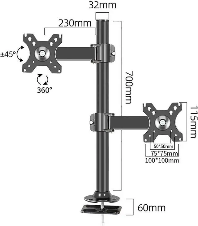 Space-Saving Design: The grommet base takes up minimal desk space while providing a stable and secure platform for your dual-monitor setup. Ideal for workstations, home offices, or gaming setups.